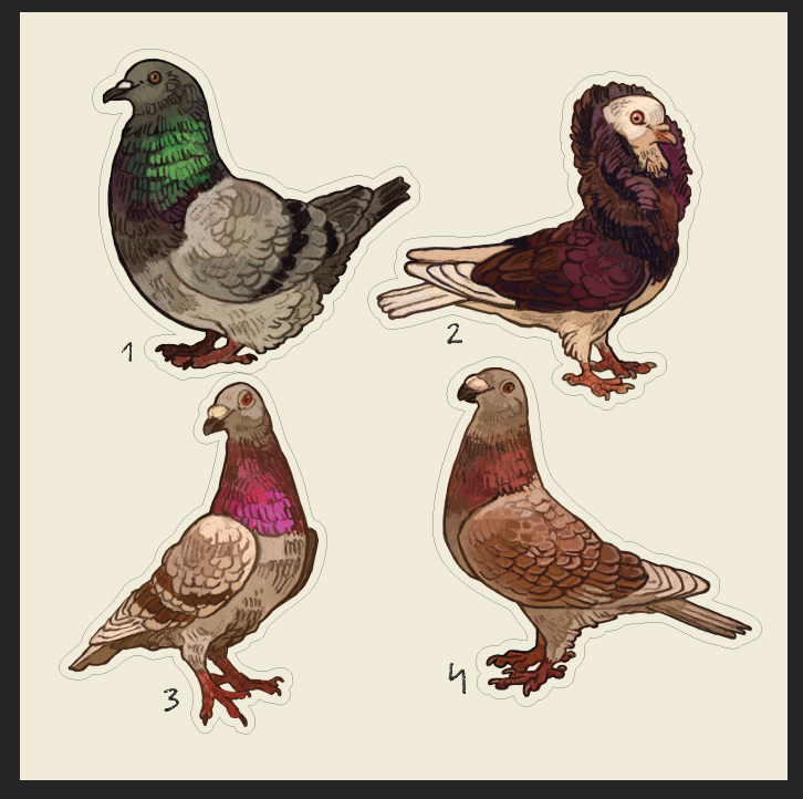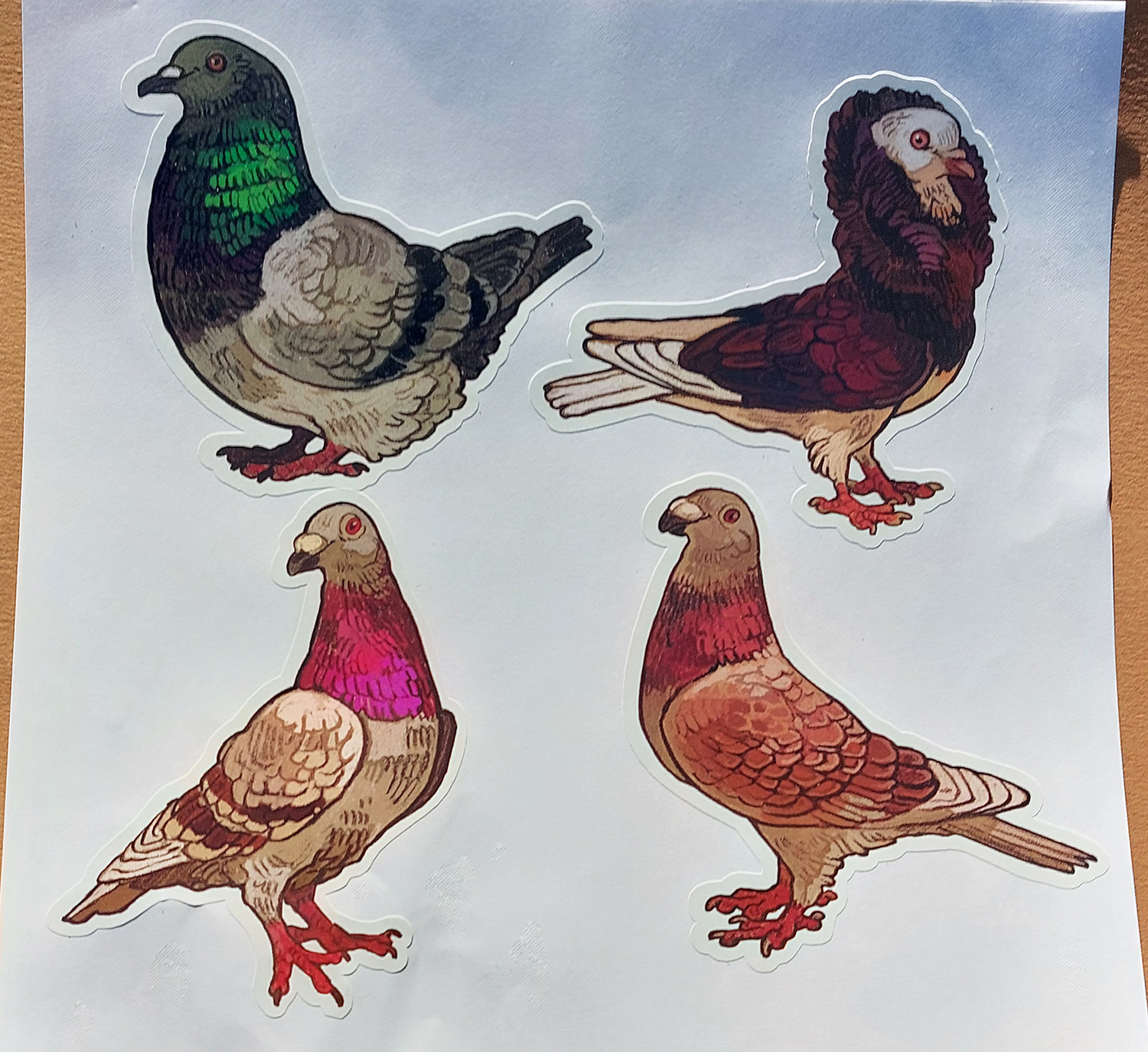 Pigeon themed stickers. Sticker paper. 20x20 cm